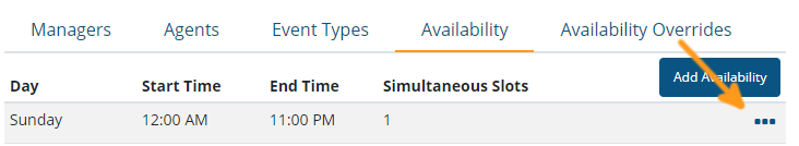 - Click the ellipses to the far right of the Availability record and select ‘Remove’.