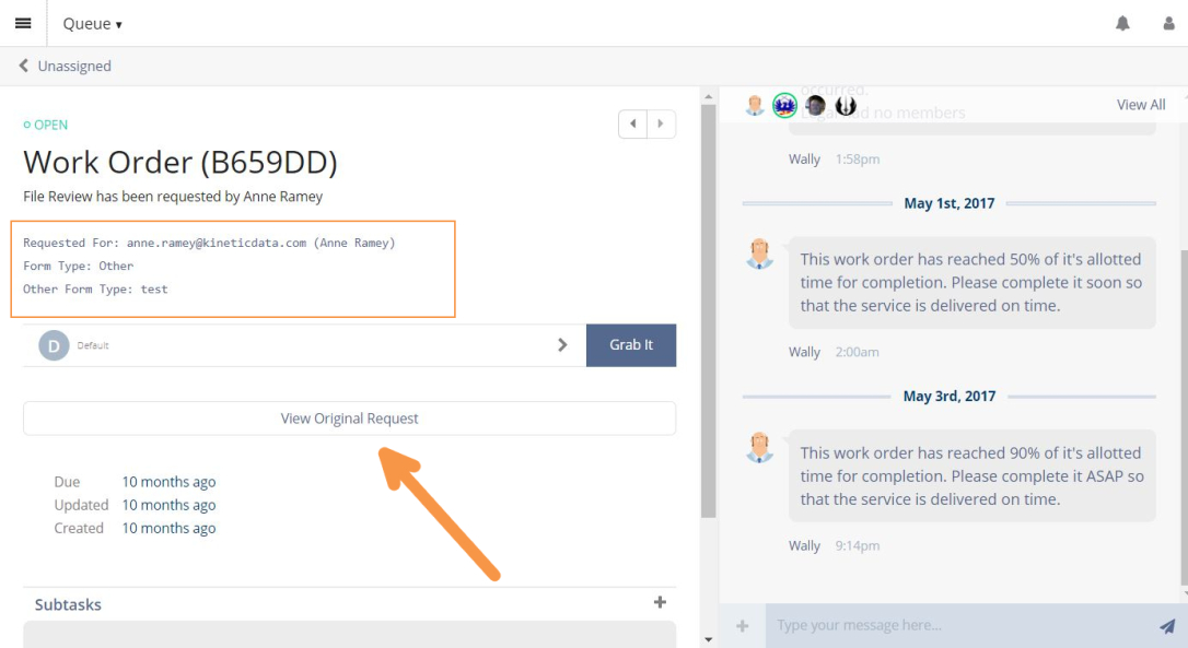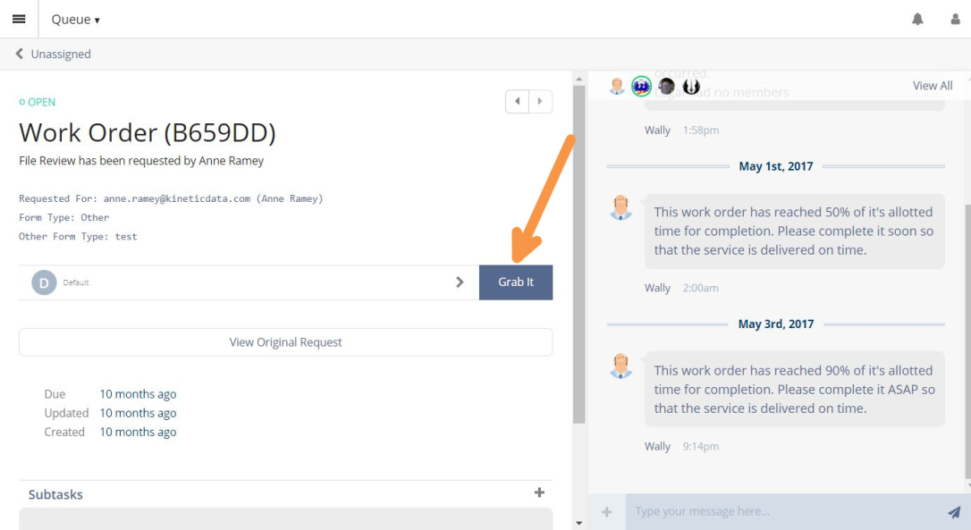 - If it is not Assigned directly to you, select Grab It