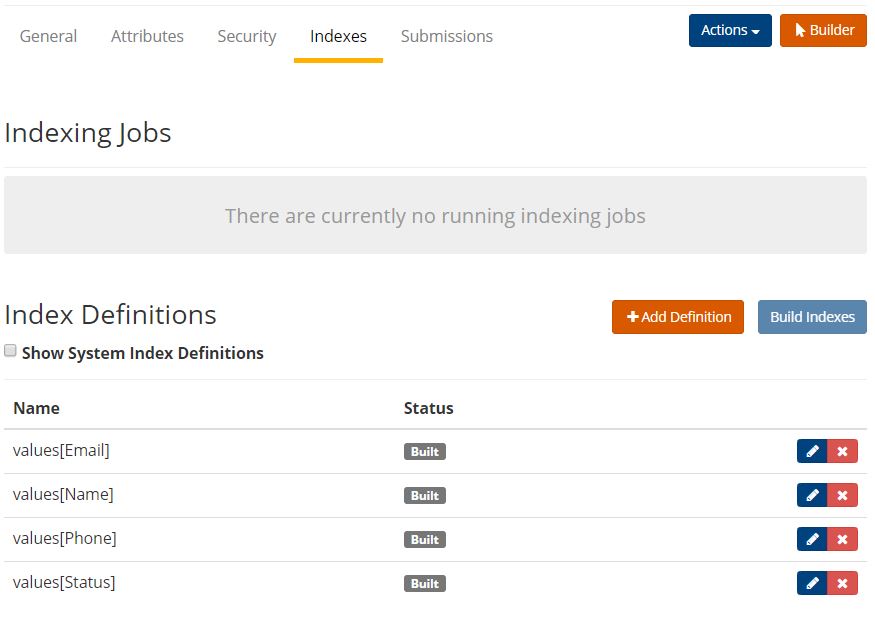 Queries need to then specify the index to use when searching the datastore form. For example, this would be a bridge qualification for a test-dataset form for all active records: